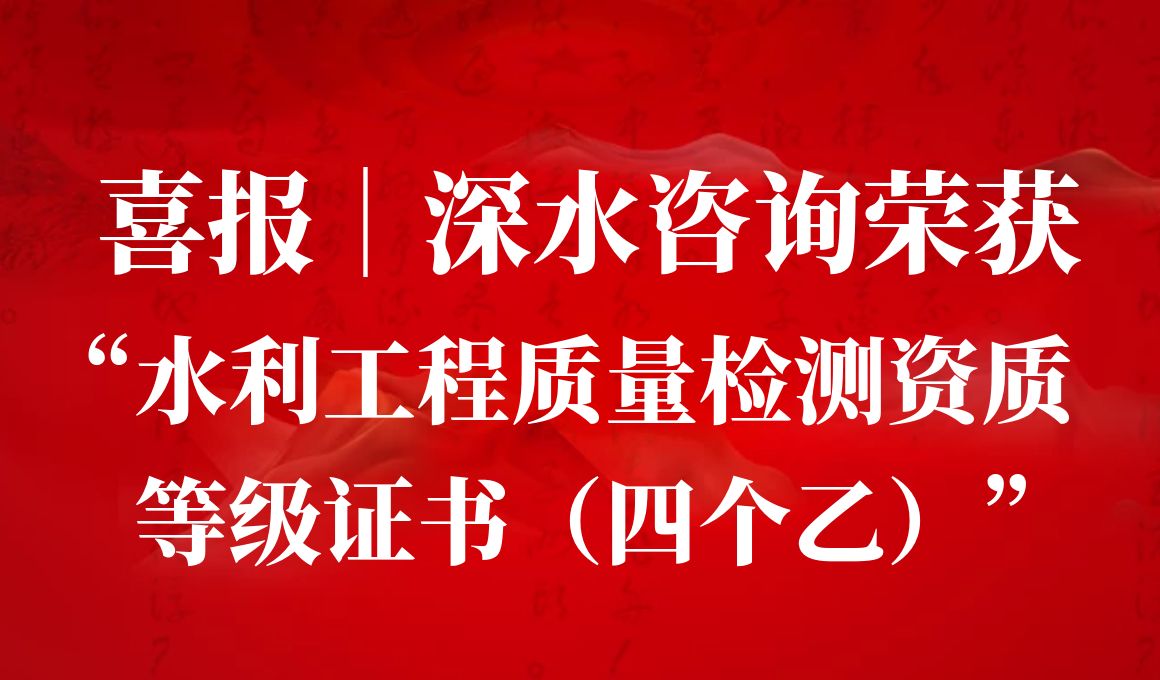 喜报!深水咨询荣获水利工程质量检测资质等级证书(四个乙)